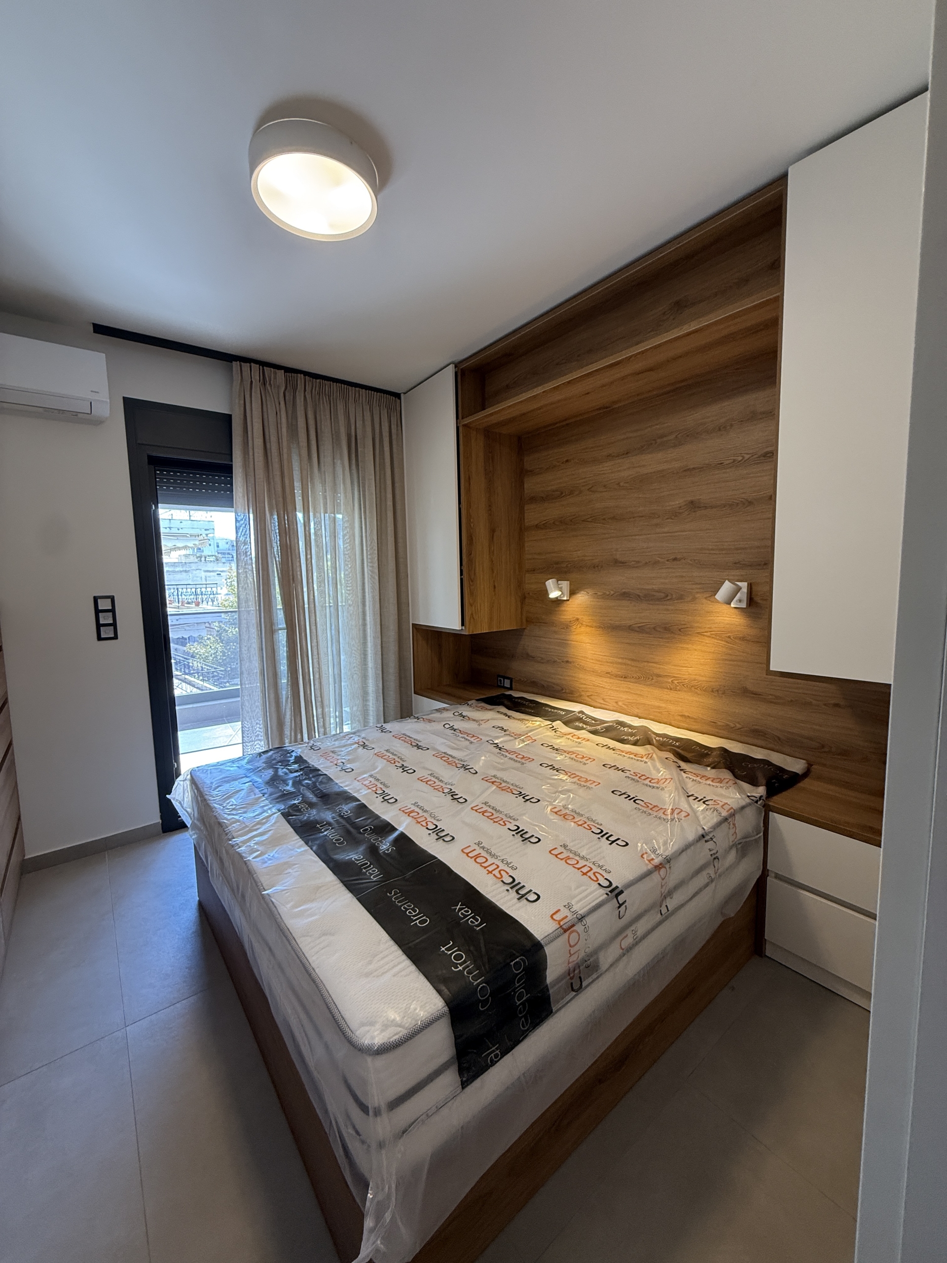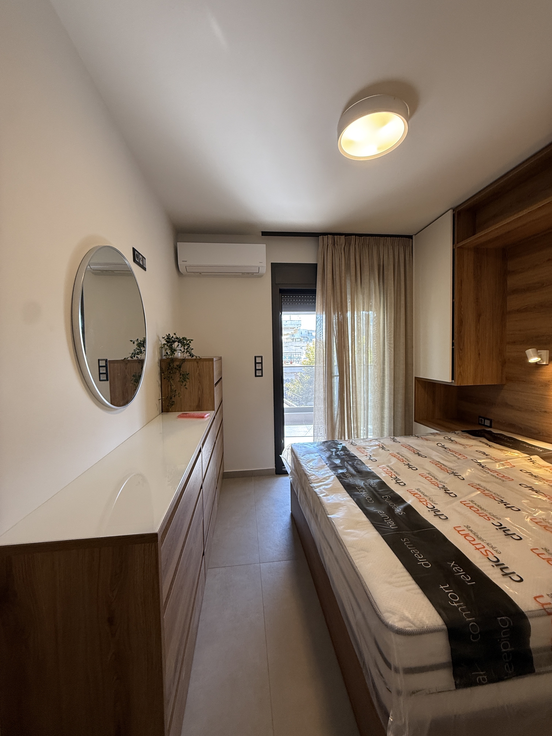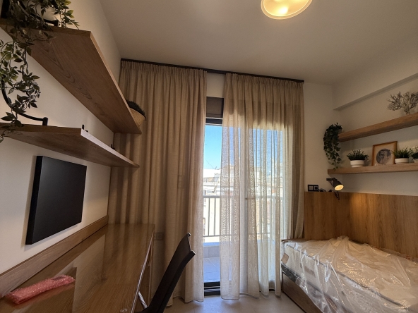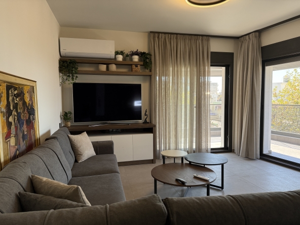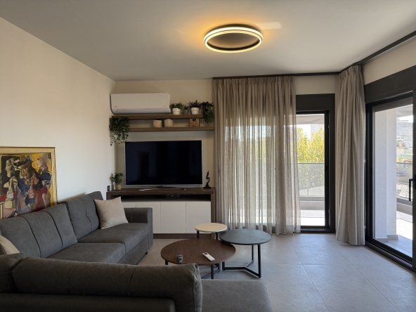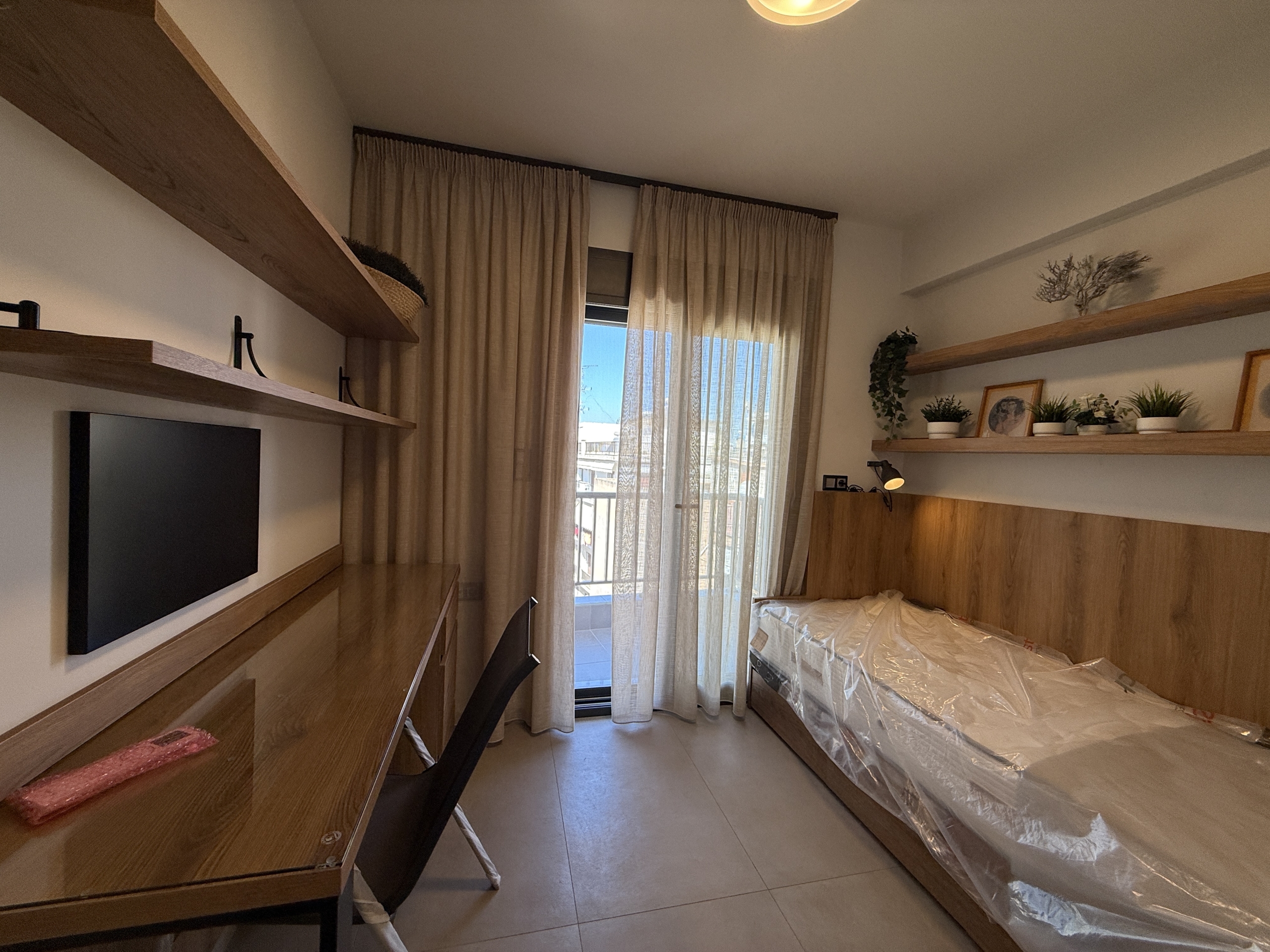For rent apartment in a newly built apartment building on the 4th floor in Kalamaria .This is a furnished apartment of 135 sq m (102 net) which consists of 3 bedrooms. Entering the apartment on the right we find the living room with a corner sofa and TV, fully equipped kitchen, with electrical appliances and a table, on the balcony there is also a small table and a wonderful view of the sea.