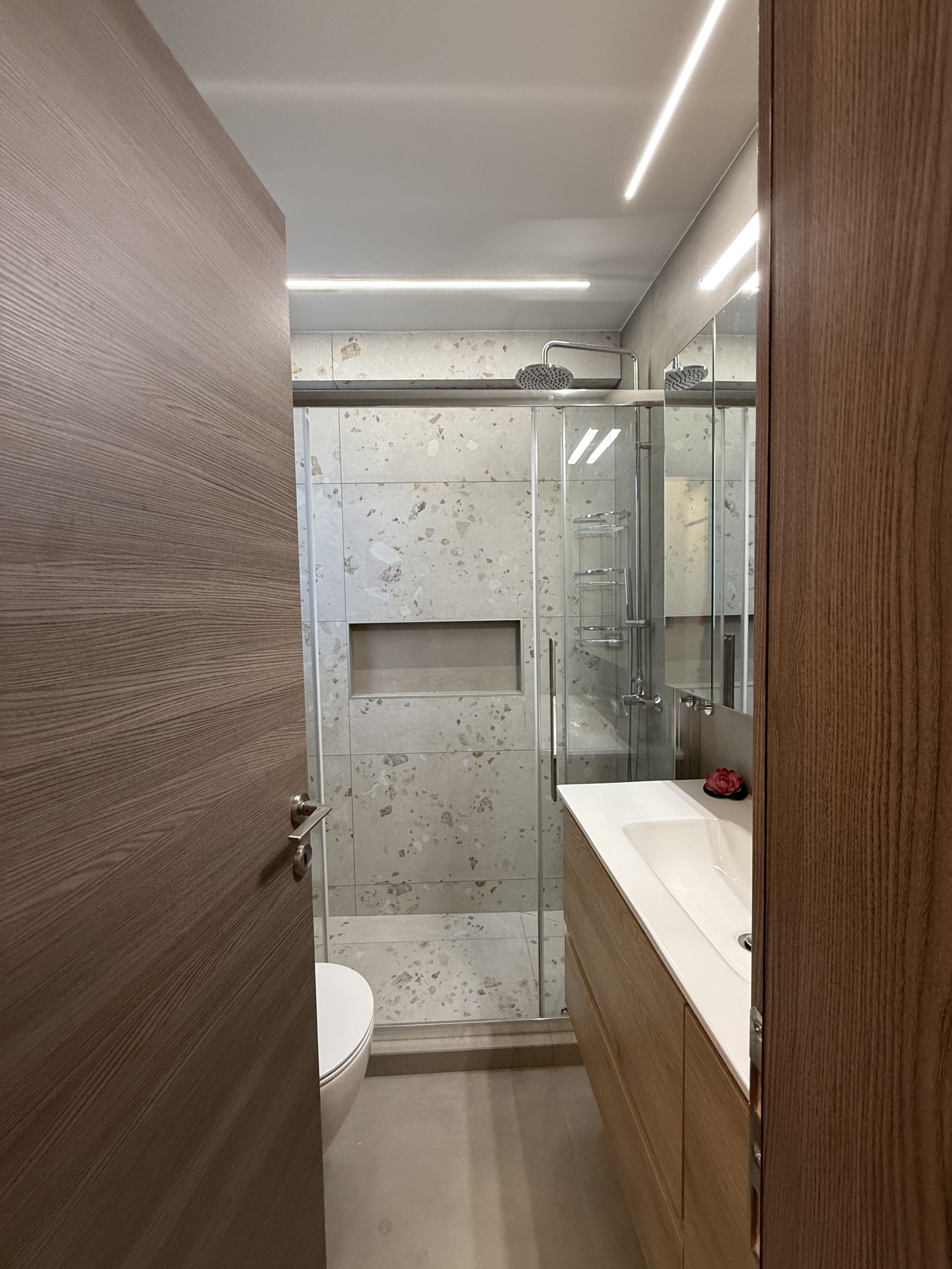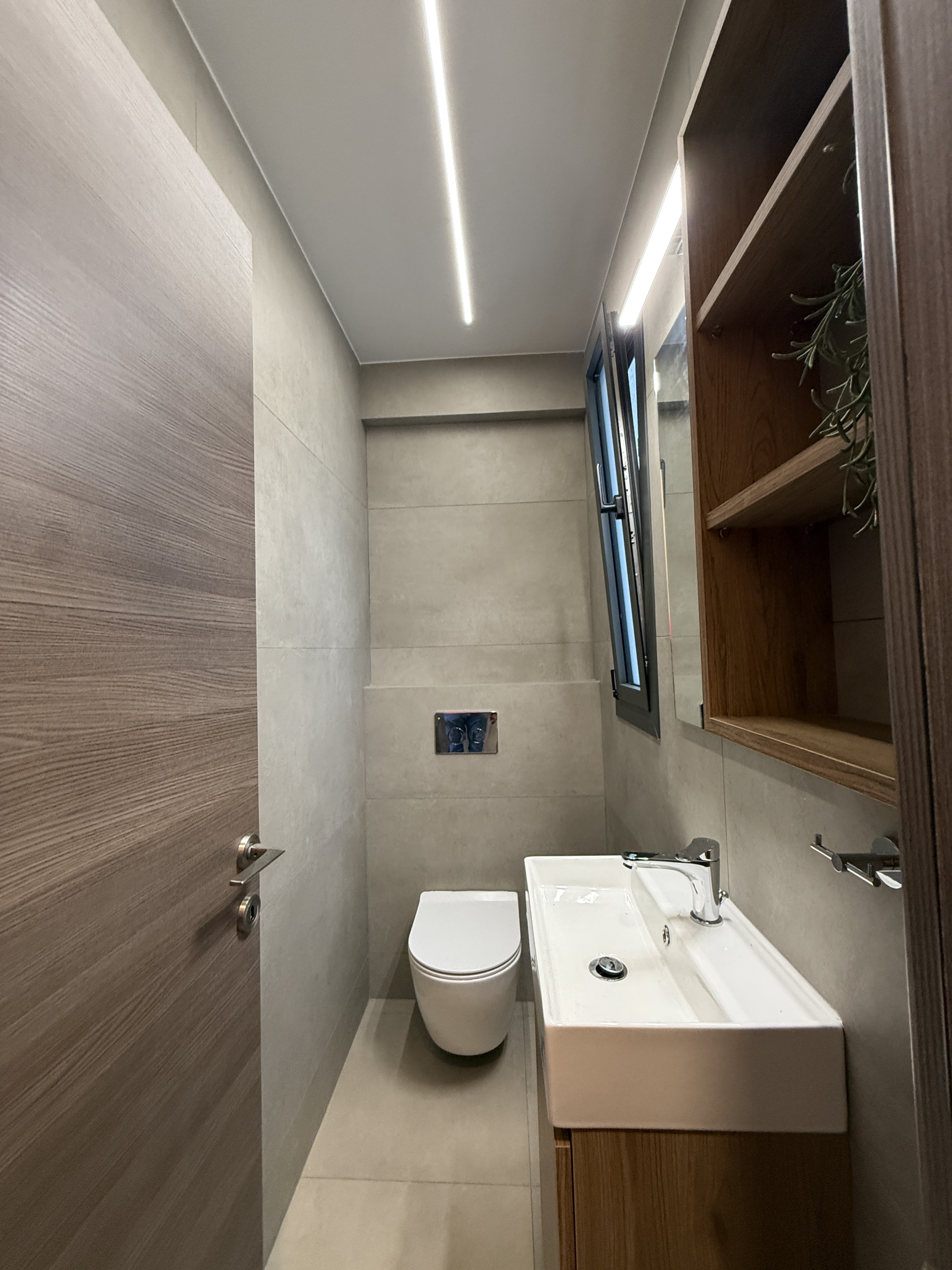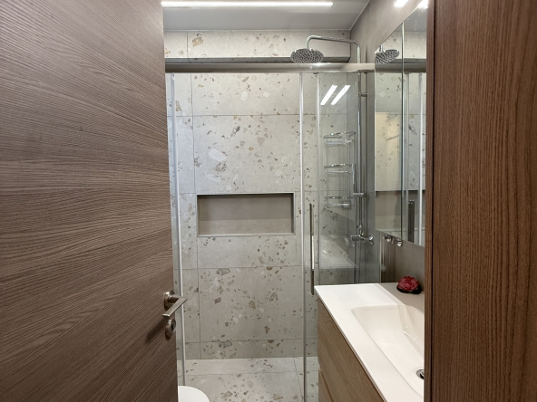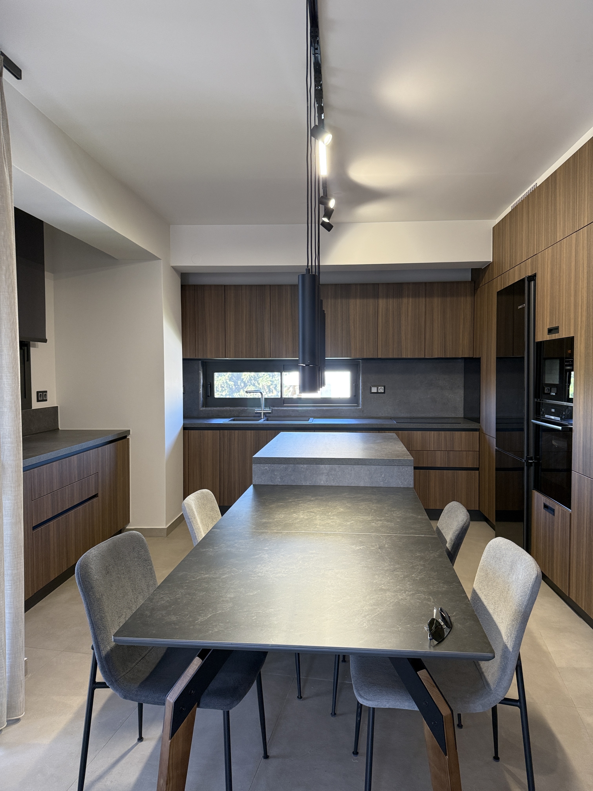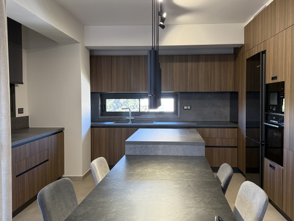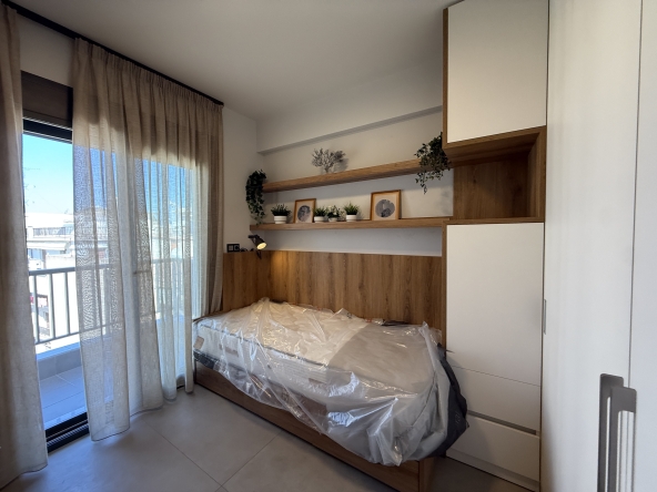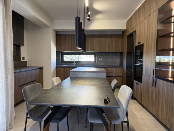 For rent apartment in a newly built apartment building on the 4th floor in Kalamaria .This is a furnished apartment of 135 sq m (102 net) which consists of 3 bedrooms. Entering the apartment on the right we find the living room with a corner sofa and TV, fully equipped kitchen, with electrical appliances and a table, on the balcony there is also a small table and a wonderful view of the sea.